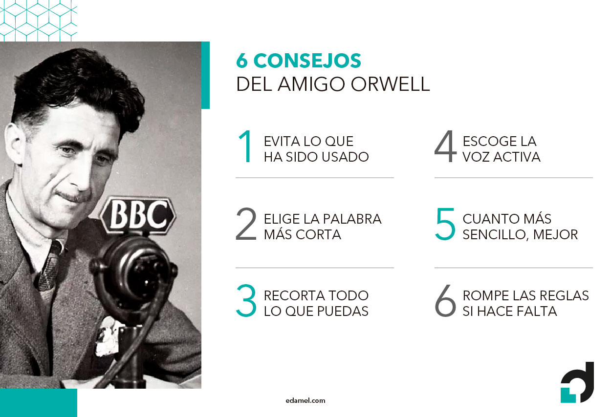 6 consejos del amigo Orwell Por Equipo Edamel|2022-02-22T11:18:42+01:0028 septiembre, 2021|Marketing de contenidos| COMPARTE ESTE TRABAJO FacebookXRedditLinkedInWhatsAppTumblrPinterestVkXingCorreo electrónico Artículos relacionados Maneras de optimizar tus acciones de marketing de crecimiento Galería Maneras de optimizar tus acciones de marketing de crecimiento Recursos e ideas para elaborar un caso de éxito sólido y eficaz Galería Recursos e ideas para elaborar un caso de éxito sólido y eficaz Herramientas para facilitar tus acciones de marketing de contenidos Galería Herramientas para facilitar tus acciones de marketing de contenidos Técnicas SEO para mejorar tu visibilidad online Galería Técnicas SEO para mejorar tu visibilidad online Claves para tu estrategia de marketing de contenidos Galería Claves para tu estrategia de marketing de contenidos