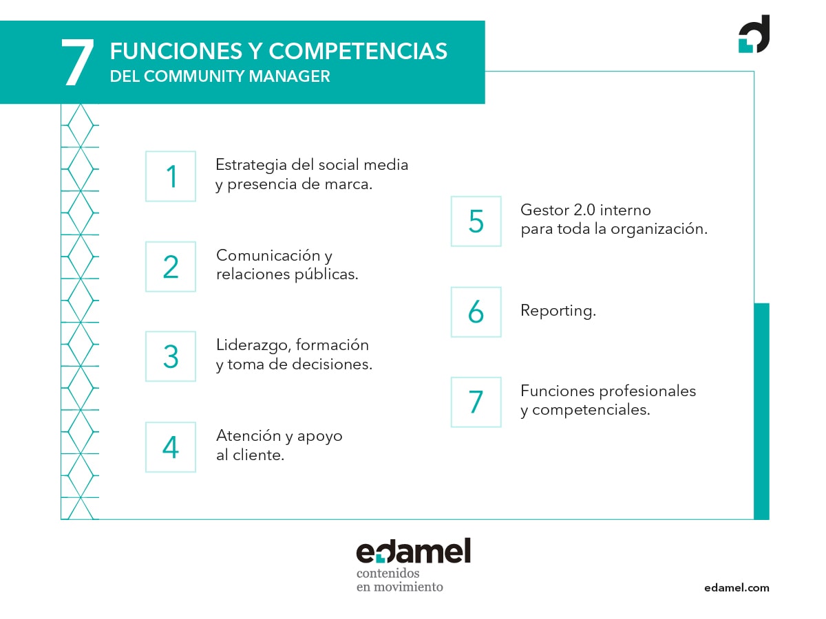 Infografía de las 7 funciones y competencias de un community manager