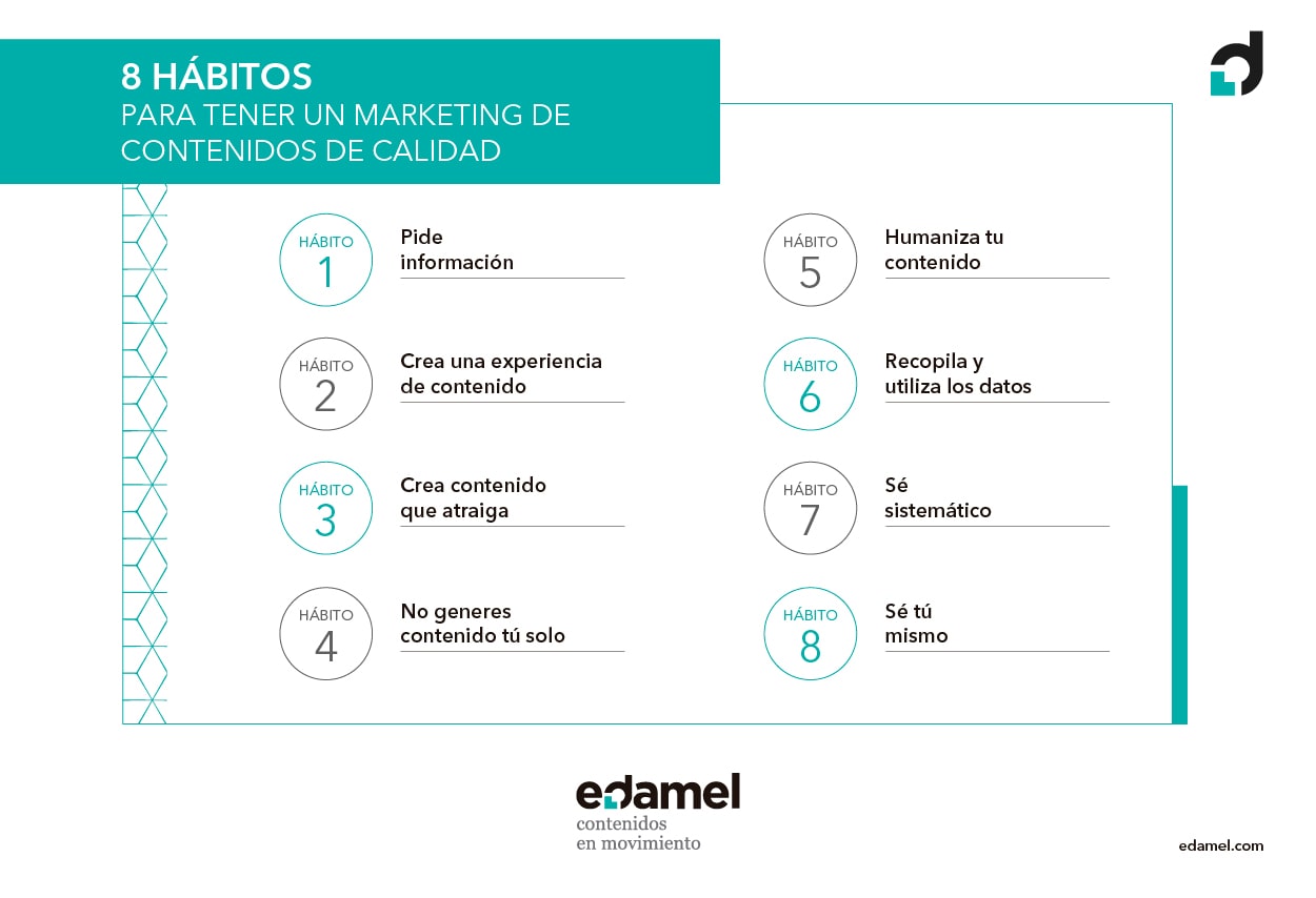 Aquí os dejamos una infografía con los 8 hábitos para hacer un marketing de contenidos de calidad
